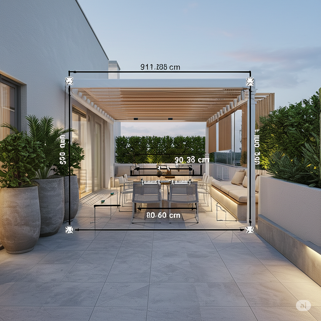 - Pérgolas con toldos: Ofrecen sombra y protección contra la lluvia ligera.