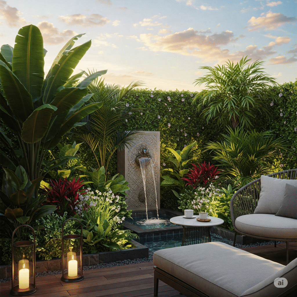- Recolección de agua de lluvia: Si el espacio lo permite, considera un pequeño depósito decorativo.