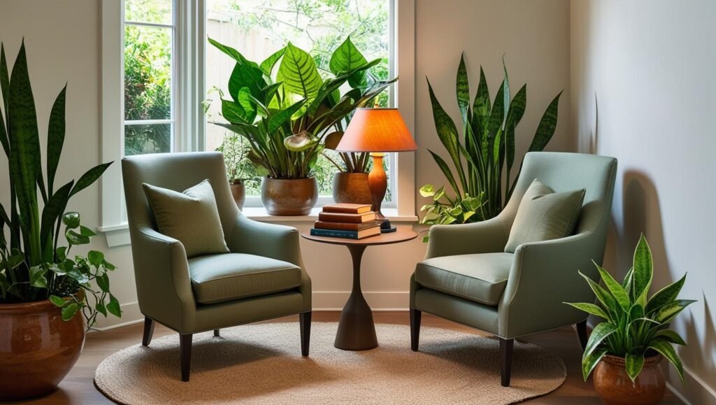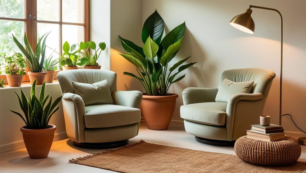 Los espacios verdes pueden ser el escenario perfecto para crear un rincón de relajación en tu hogar. Un área dedicada a la lectura, meditación o simplemente para disfrutar de la tranquilidad, hará que el ambiente se sienta aún más acogedor.